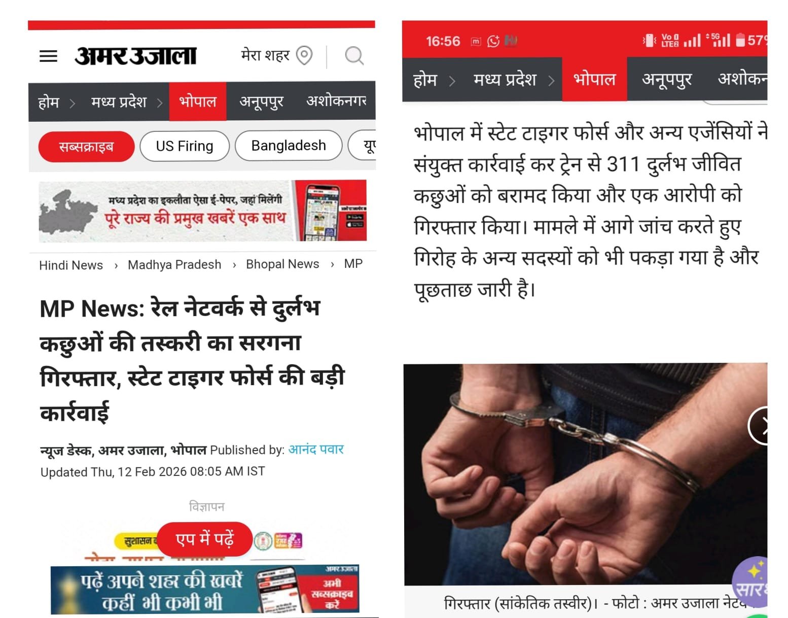 रेल नेटवर्क के जरिये दुर्लभ एवं प्रतिबंधित प्रजाति के कछुओं की तस्करी उत्तर प्रदेश से मध्यप्रदेश के विभिन्न शहरों में करने वाले गिरोह का पर्दाफाश