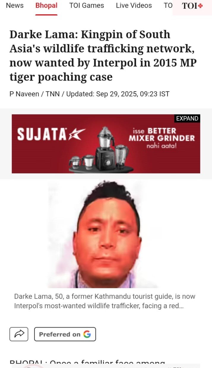 Darke Lama: Kingpin of South Asia's wildlife trafficking network, now wanted by Interpol in 2015 MP tiger poaching case