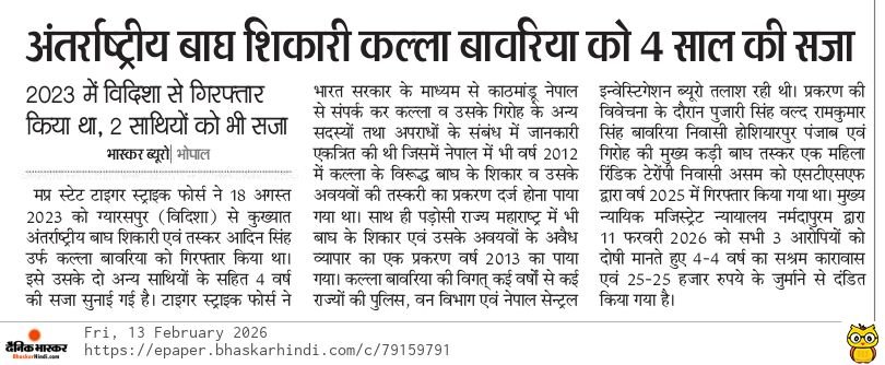 अंतर्राष्ट्रीय बाघ शिकारी कल्ला बावरिया को हुई 4 वर्ष की सजा